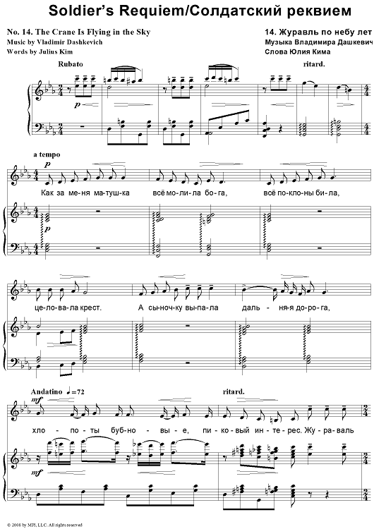 Digital Sheet Music for Soldier’s Requiem. 14. The Crane Is Flying in the Sky by , Juliy Kim, Vladimir Dashkevich scored for Piano/Vocal; id:403281