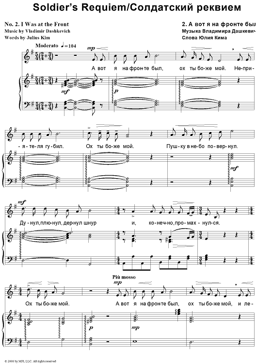 Digital Sheet Music for Soldier’s Requiem. 2. I Was at the Front by , Juliy Kim, Vladimir Dashkevich scored for Piano/Vocal; id:403269