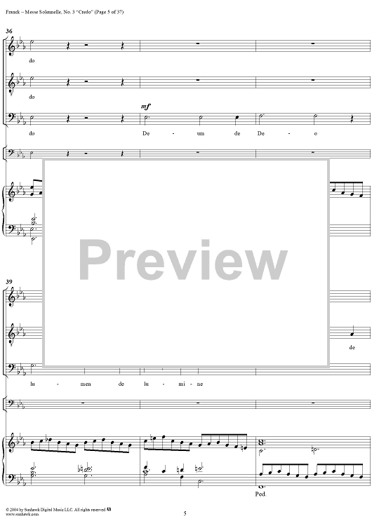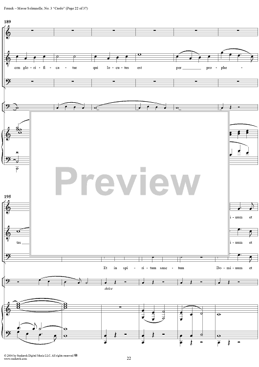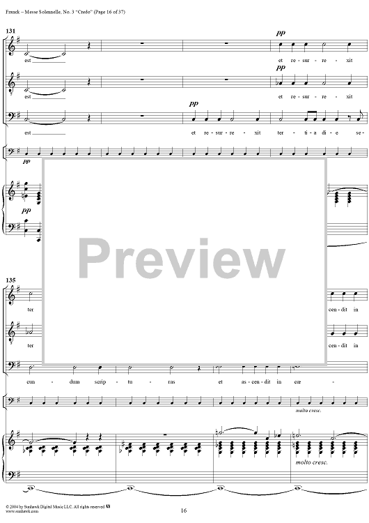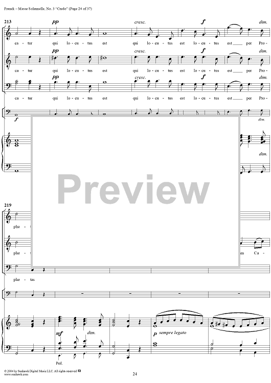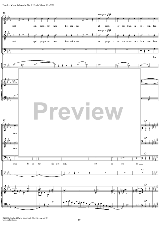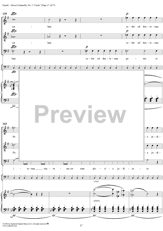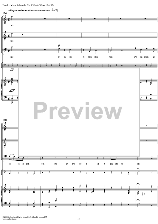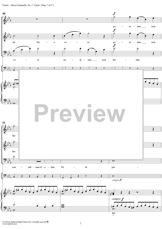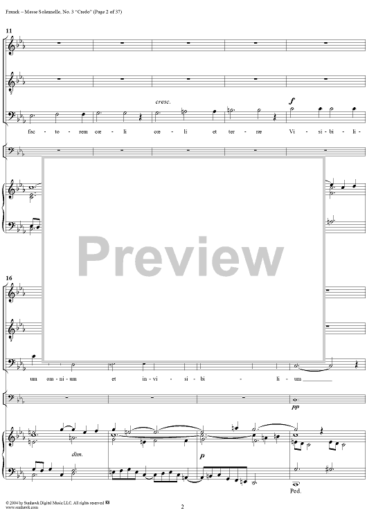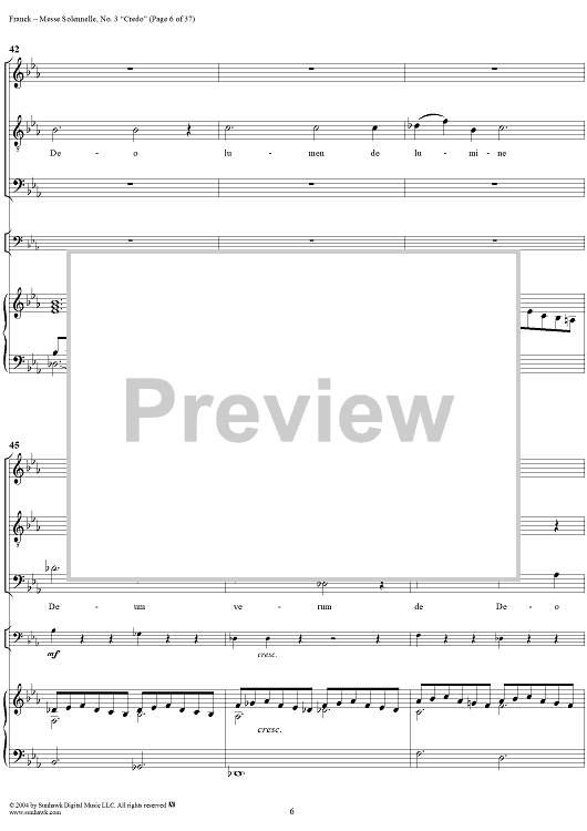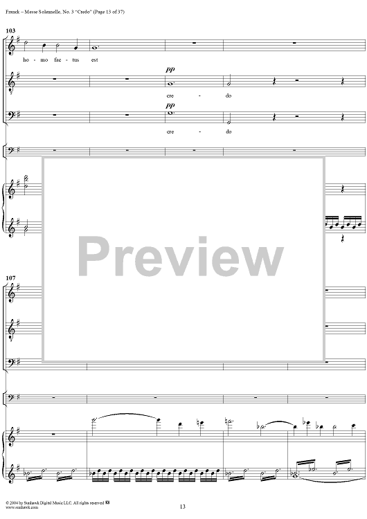 Digital Sheet Music for Solemn Mass, Op. 12: No. 3, Credo by César Franck scored for STB Choir, Harp, Cello, Bass and Organ; id:304746