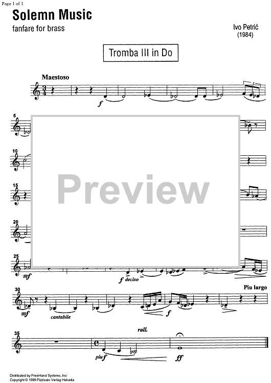 Digital Sheet Music for Solemn Music - Trumpet in C 1 by , Ivo Petric scored for Brass Ensemble; id:335699