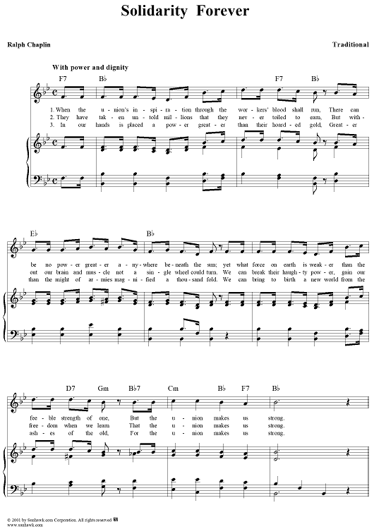 Digital Sheet Music for Solidarity Forever by Ralph Chaplin, Traditional scored for Piano/Vocal/Chords; id:261878