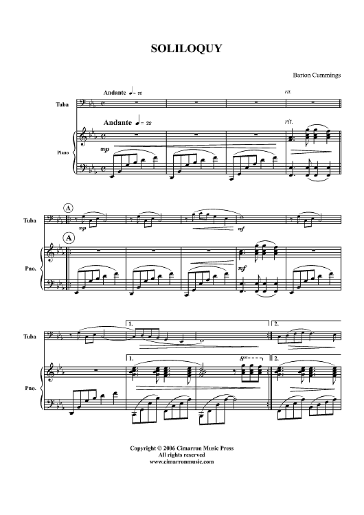 Digital Sheet Music for Soliloquy - Piano Score by Barton Cummings scored for Tuba/Piano; id:319216