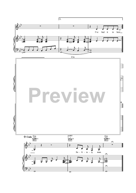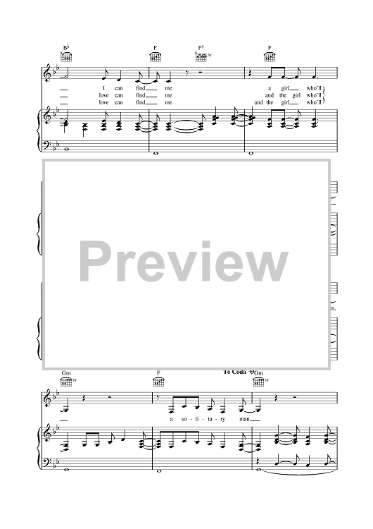 Digital Sheet Music for Solitary Man by Johnny Cash scored for Piano/Vocal/Chords; id:378721