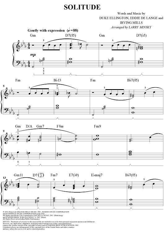 Digital Sheet Music for Solitude by Duke Ellington, Irving Mills, Larry Minsky, Eddie De Lange scored for Easy Piano; id:293651