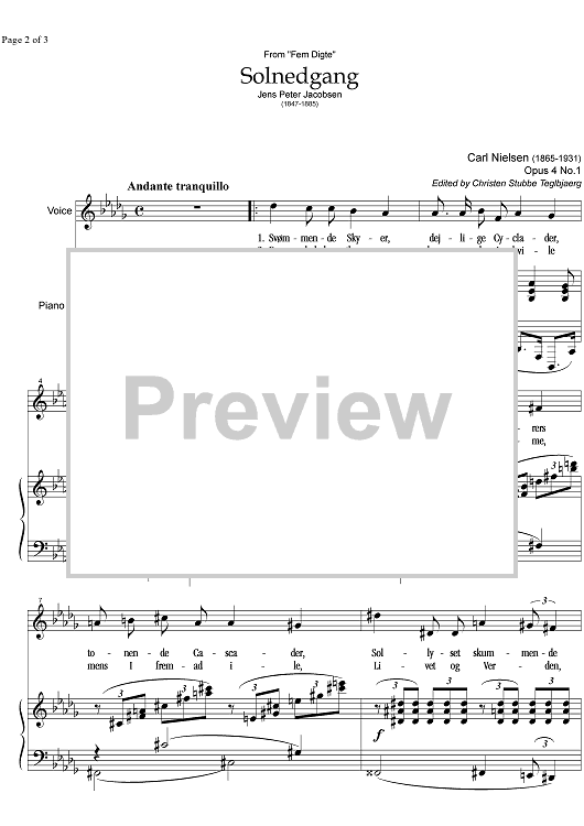 "Solnedgang Op. 4 No. 1" Sheet Music by Carl Nielsen