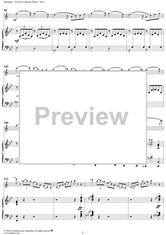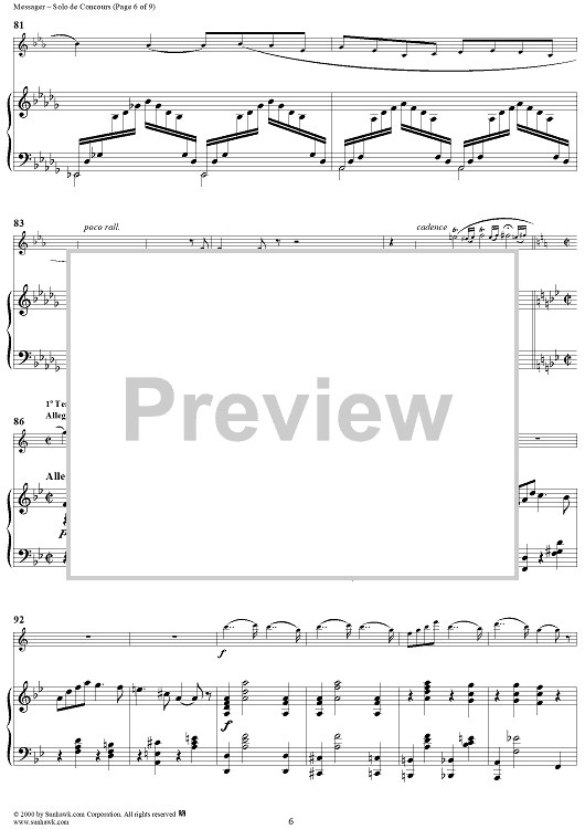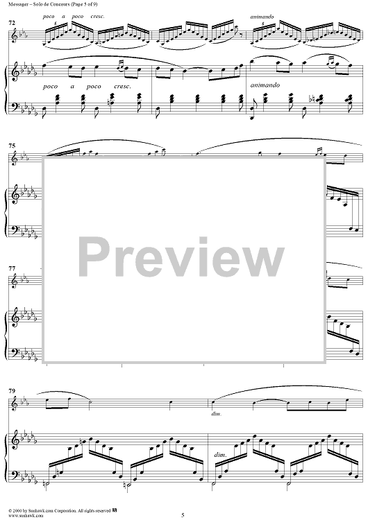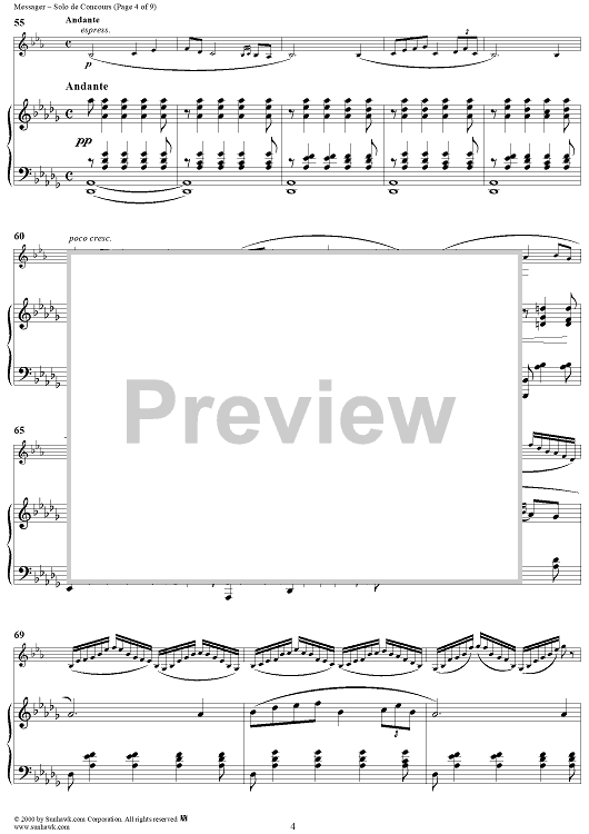 Digital Sheet Music for Solo de Concours - Piano Score by André Messager scored for Clarinet/Piano; id:220588