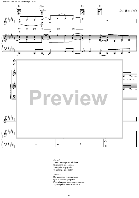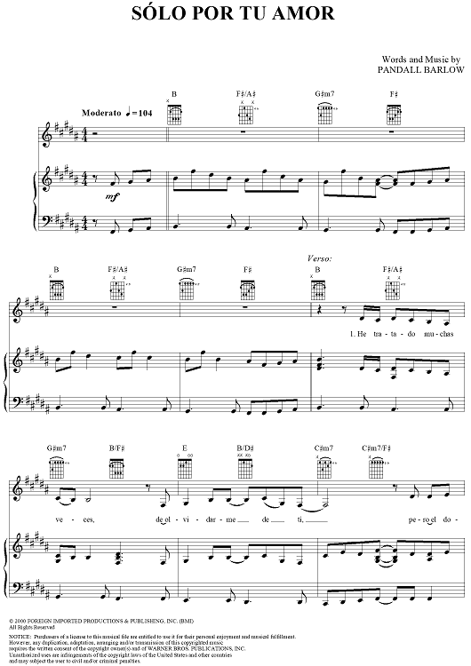 Digital Sheet Music for Sólo por Tu Amor by Gloria Estefan, Randall Barlow scored for Piano/Vocal/Chords; id:286382