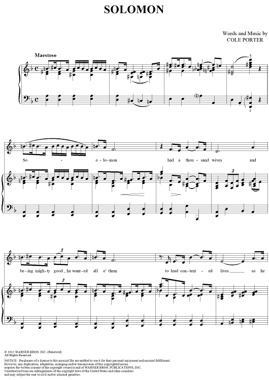 Digital Sheet Music for Solomon by Cole Porter scored for Piano/Vocal/Chords; id:316509
