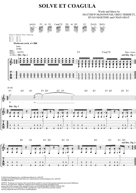 Digital Sheet Music for Solve Et Coagula by Matthew McDonough, Gurrg, Ry-Know, Chad Gray, Mudvayne scored for Guitar Tab/Vocal; id:297593
