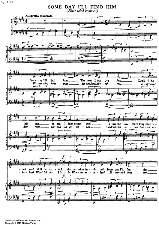 Digital Sheet Music for Some Day I'll Find Him by , Franz Lehár scored for Soprano/Piano; id:332801