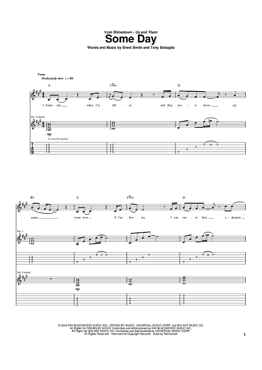 Digital Sheet Music for Some Day by Tony Battaglia, Shinedown, Brent Smith scored for Guitar Tab; id:392358