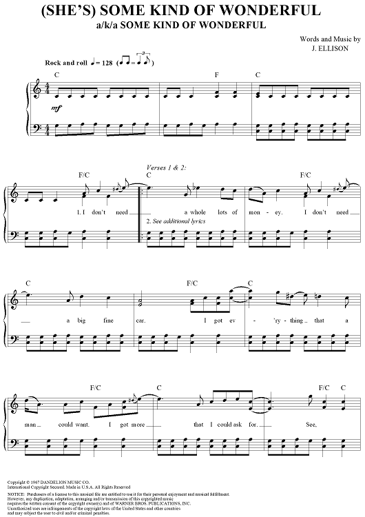 "Some Kind of Wonderful" Sheet Music by J. Ellison