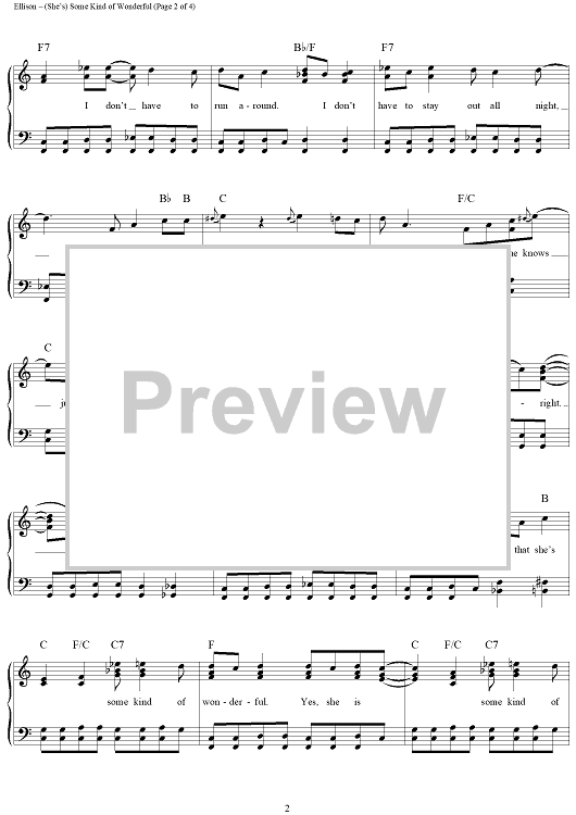 Digital Sheet Music for Some Kind of Wonderful by J. Ellison scored for Piano/Vocal/Chords; id:241166