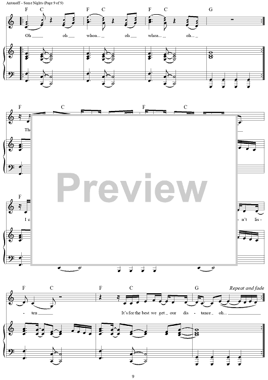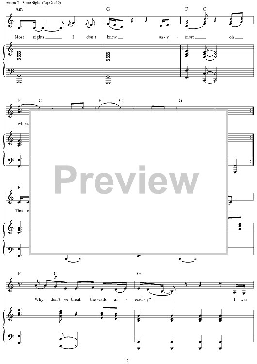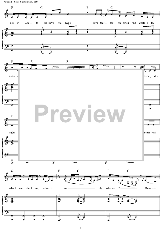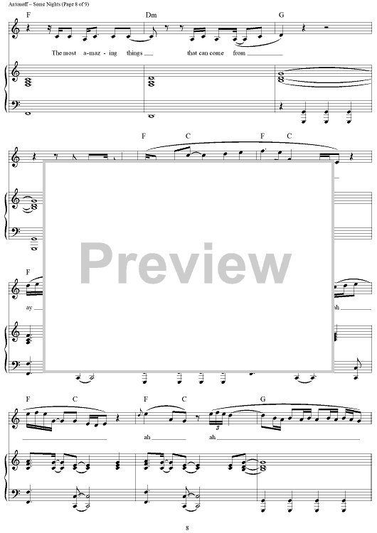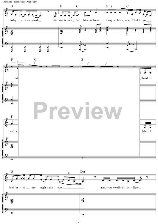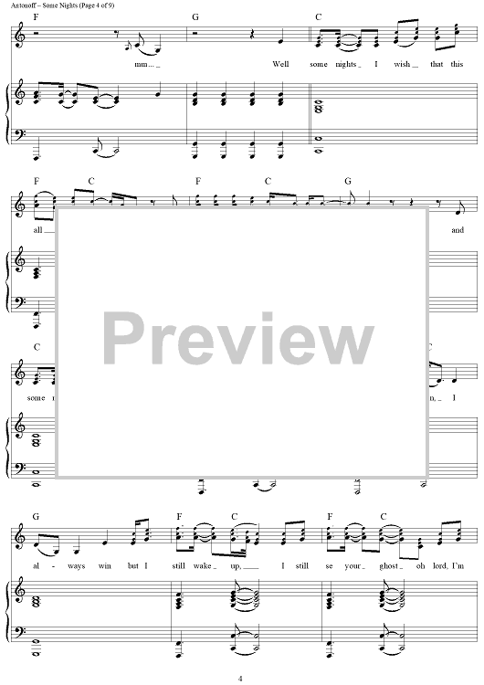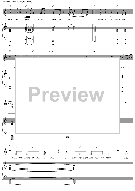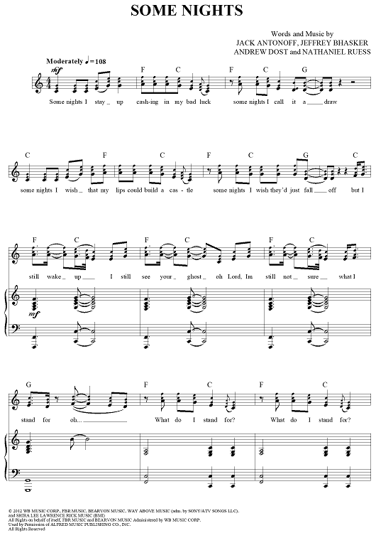 Digital Sheet Music for Some Nights by Jack Antonoff, Andrew Dost, Nathaniel Ruess, Fun., Jeffrey Bhasker scored for Piano/Vocal/Chords; id:430131