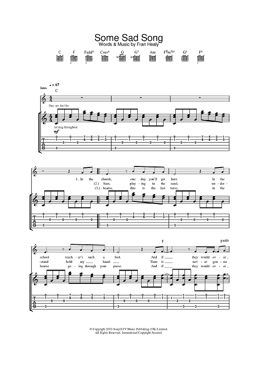 Digital Sheet Music for Some Sad Song by Travis scored for Guitar Tab; id:378225