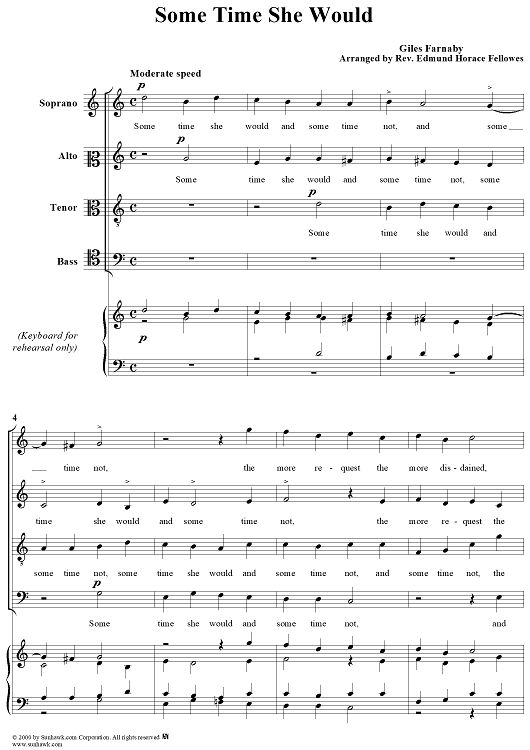 Digital Sheet Music for Some Time She Would by Giles Farnaby, Rev. Edmund Horace Fellowes scored for Four-part Mixed Chorus; id:269736