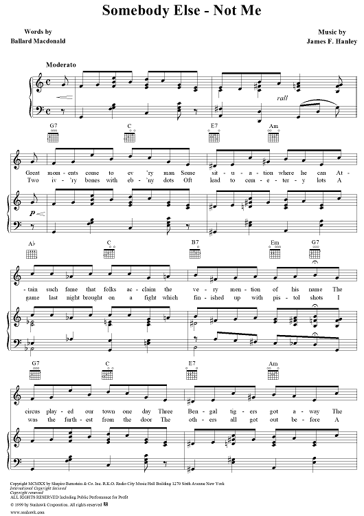 Digital Sheet Music for Somebody Else-Not Me by James F. Hanley scored for Piano/Vocal/Chords; id:254253