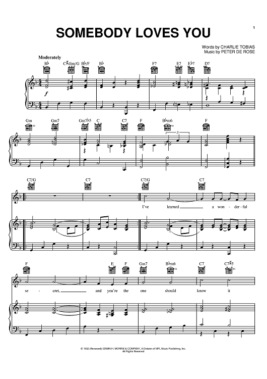 Digital Sheet Music for Somebody Loves You by Charlie Tobias, Dean Martin, Peter De Rose, Ernest Tubb scored for Piano/Vocal/Chords; id:386026