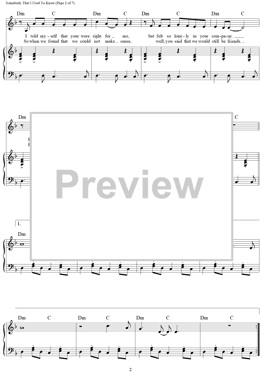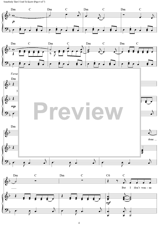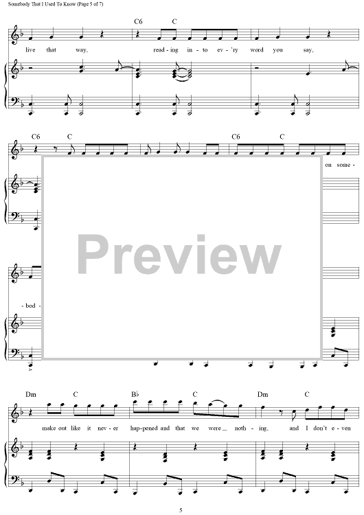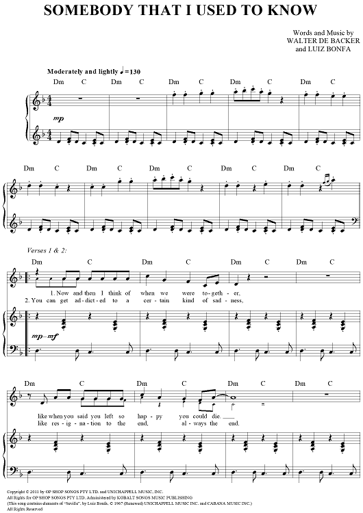 "Somebody That I Used To Know" Sheet Music by Gotye