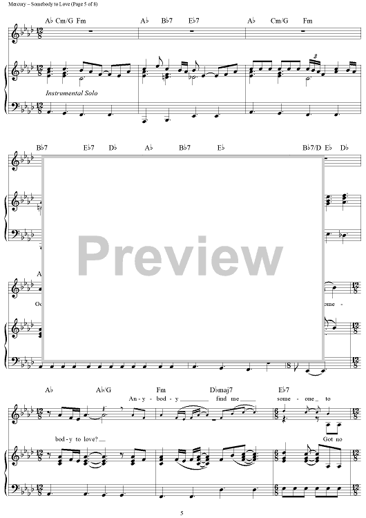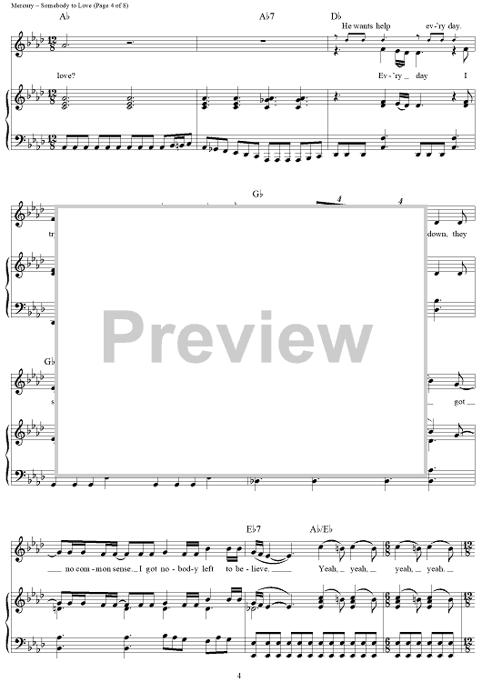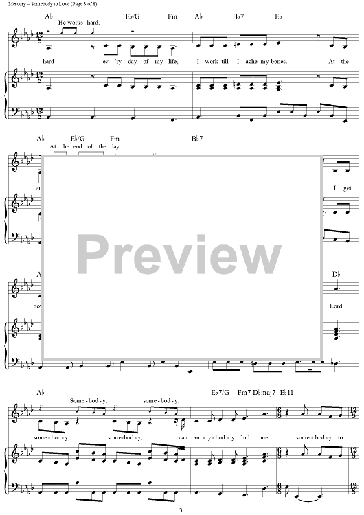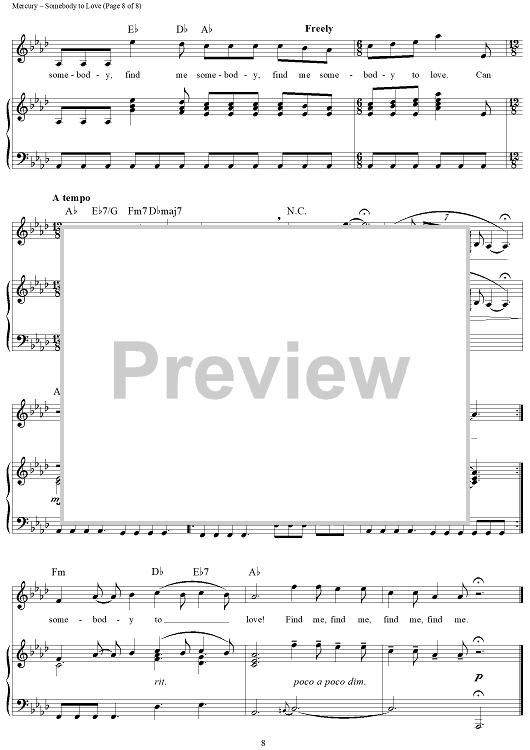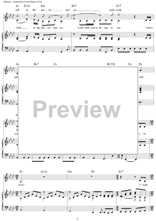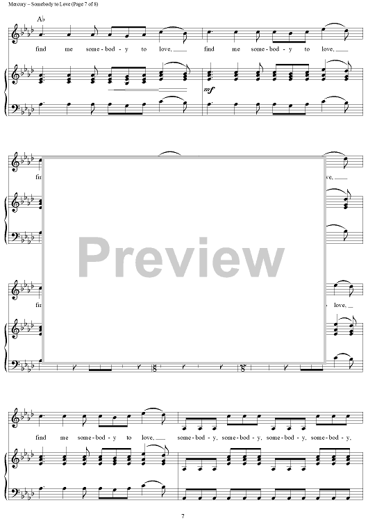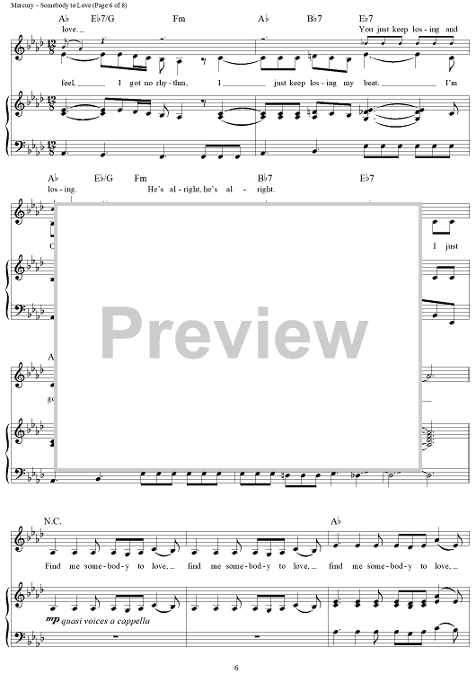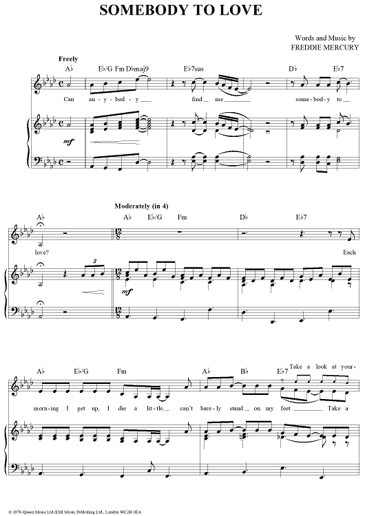 Digital Sheet Music for Somebody to Love by Queen, Freddie Mercury scored for Piano/Vocal/Chords; id:365272