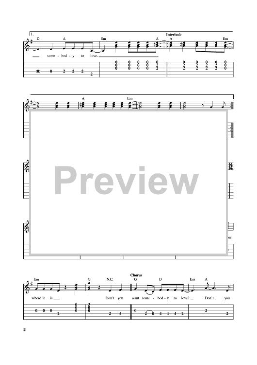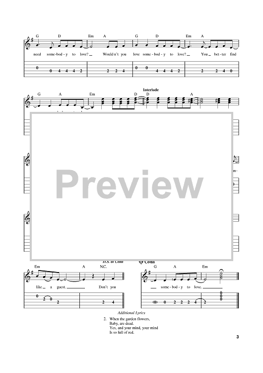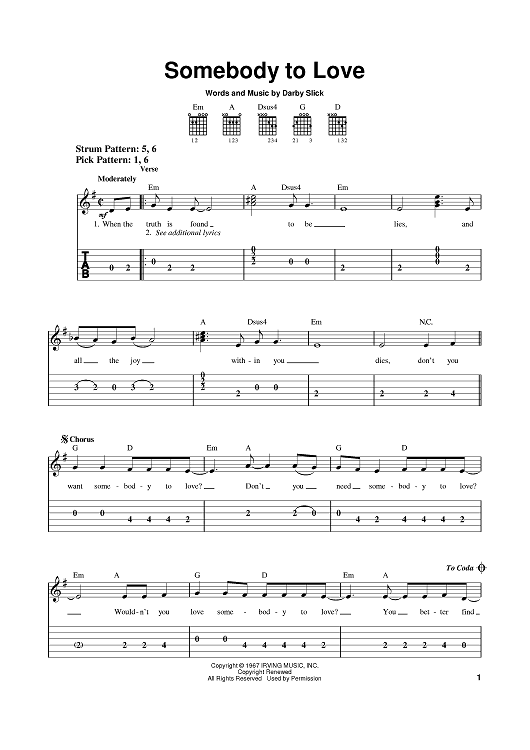 "Somebody To Love" Sheet Music by Jefferson Airplane