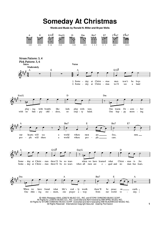 Digital Sheet Music for Someday At Christmas by Bryan Wells, Ronald N. Miller scored for Easy Guitar; id:372343
