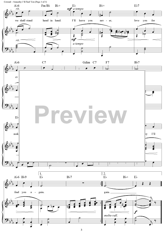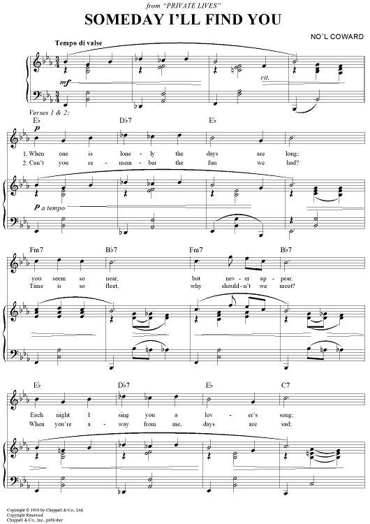 Digital Sheet Music for Someday I'll Find You by Noel Coward scored for Piano/Vocal/Chords; id:356595