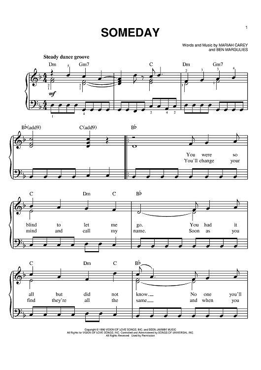Digital Sheet Music for Someday by Mariah Carey, Ben Margulies scored for Easy Piano; id:397321