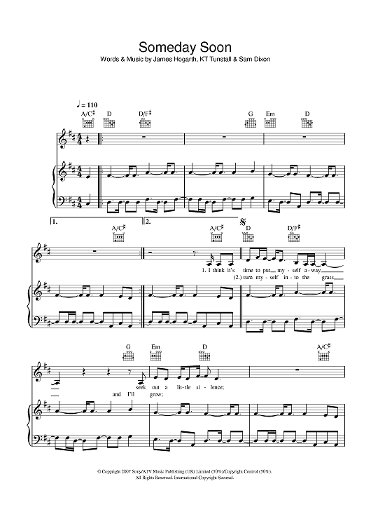 Digital Sheet Music for Someday Soon by KT Tunstall, Sam Dixon, James Hogarth scored for Piano/Vocal/Chords; id:401665