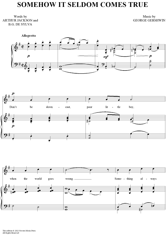 "Somehow It Seldom Comes True" Sheet Music by George Gershwin