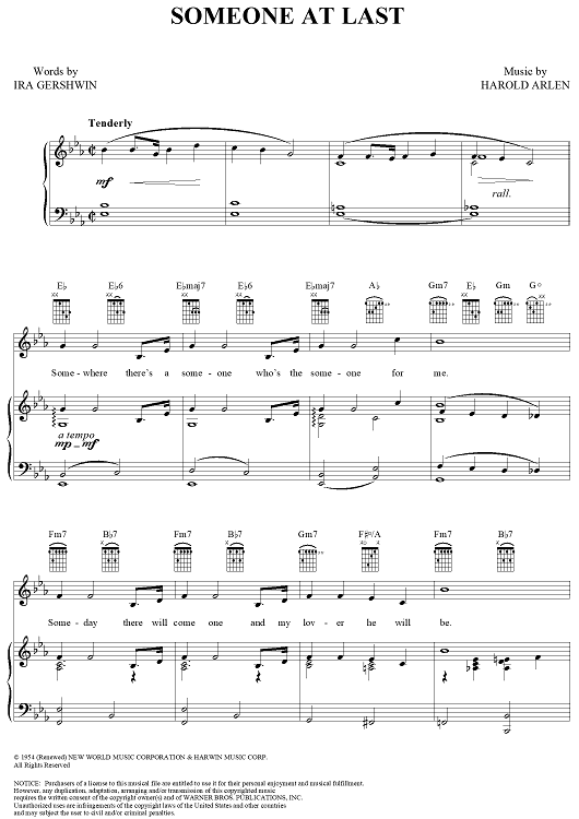 Digital Sheet Music for Someone at Last by Harold Arlen, Judy Garland, Ira Gershwin scored for Piano/Vocal/Chords; id:355340