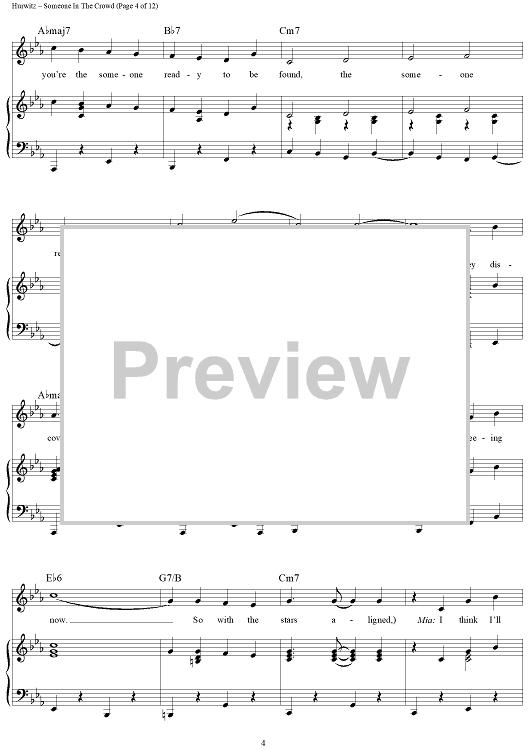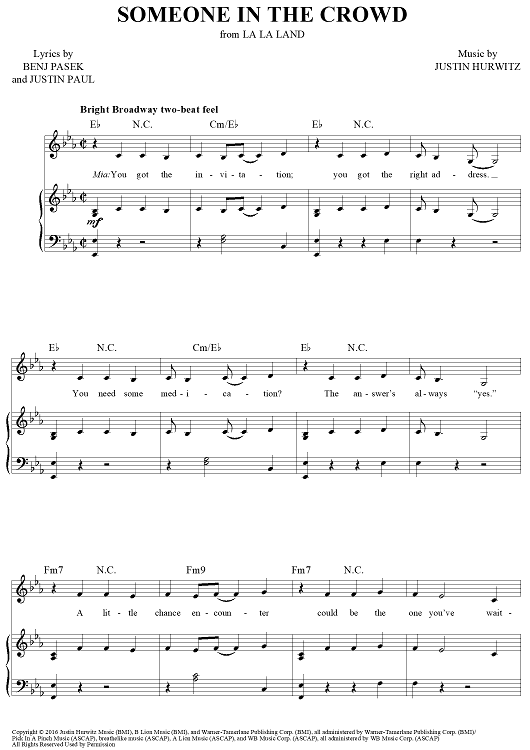 Digital Sheet Music for Someone In The Crowd - from La La Land by Benj Pasek, Justin Paul, Justin Hurwitz scored for Piano/Vocal/Chords; id:463718