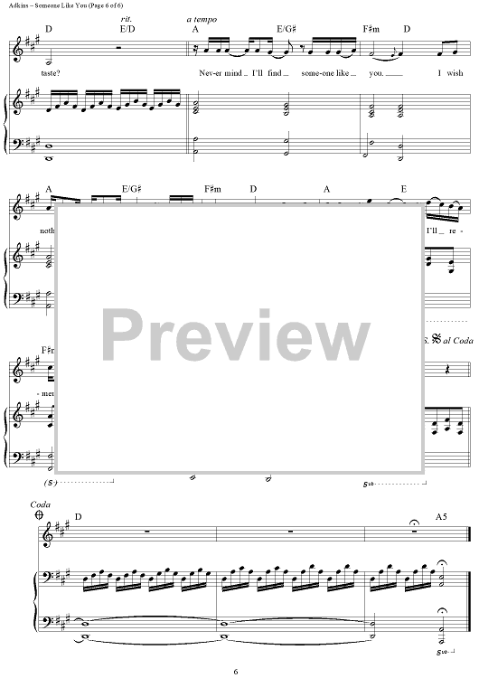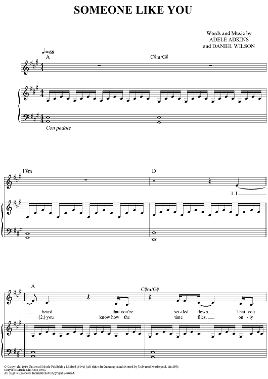 "Someone Like You" Sheet Music by Adele