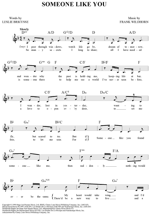 Digital Sheet Music for Someone Like You by Leslie Bricusse, Frank Wildhorn scored for Lead Sheet; id:446662