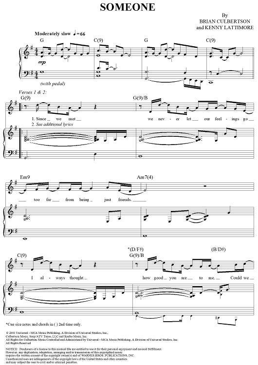 Digital Sheet Music for Someone by Brian Culbertson, Kenny Lattimore scored for Piano/Vocal/Chords; id:313812