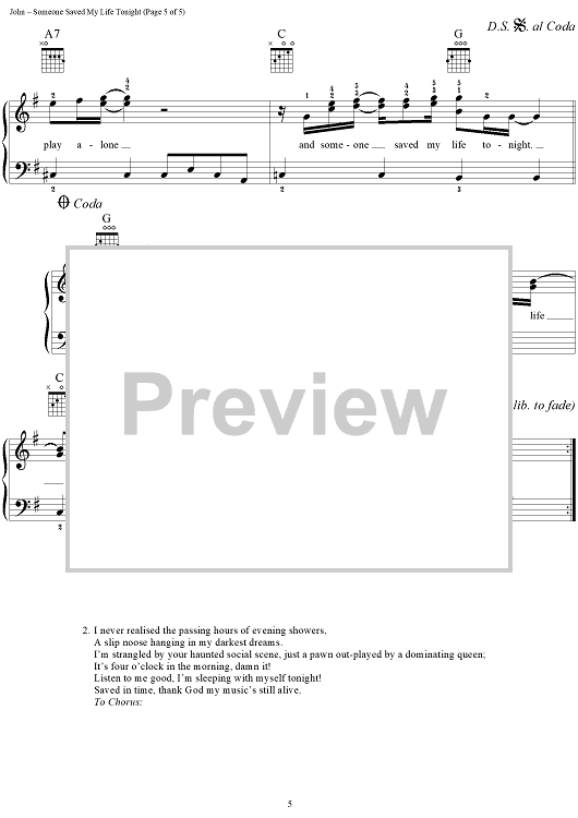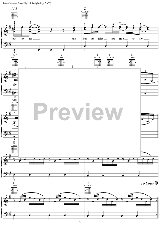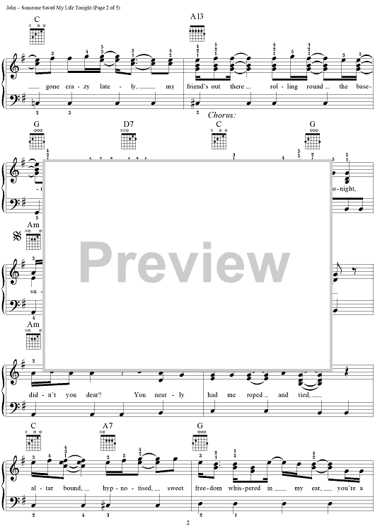 "Someone Saved My Life Tonight" Sheet Music by Elton John