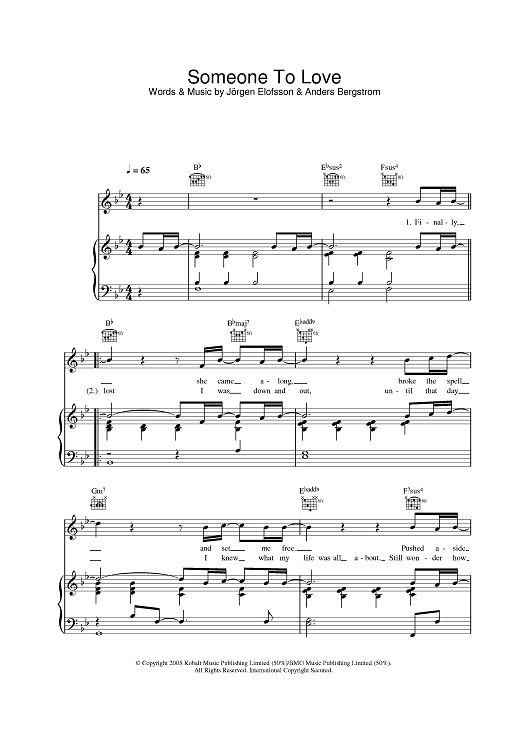 Digital Sheet Music for Someone To Love by Jörgen Elofsson, Shayne Ward, Anders Bergstrom scored for Piano/Vocal/Chords; id:392114