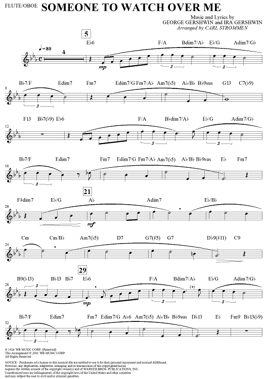 Digital Sheet Music for Someone To Watch For Me by George Gershwin, Ira Gershwin, Carl Strommen scored for Flute or Oboe; id:308561