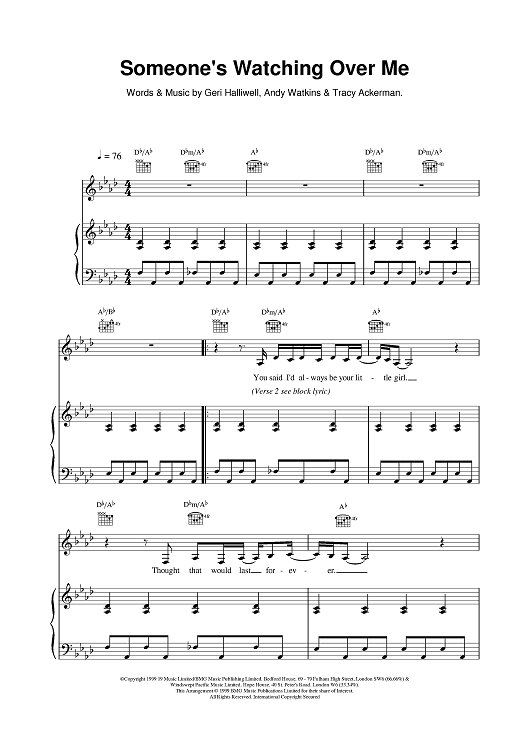 Digital Sheet Music for Someone's Watching Over Me by Andy Watkins, Geri Halliwell, Tracy Ackerman scored for Piano/Vocal/Chords; id:379946