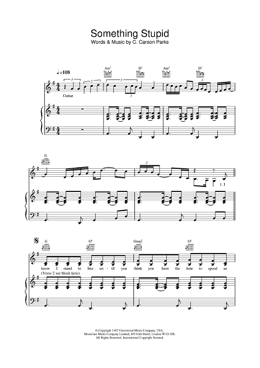 Digital Sheet Music for Somethin' Stupid by Frank Sinatra, C. Carson Parks scored for Piano/Vocal/Chords; id:379623