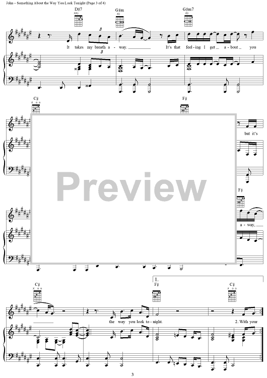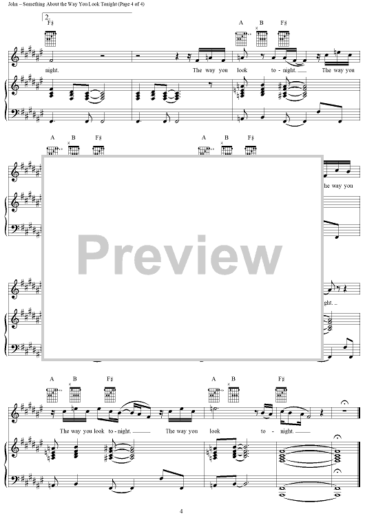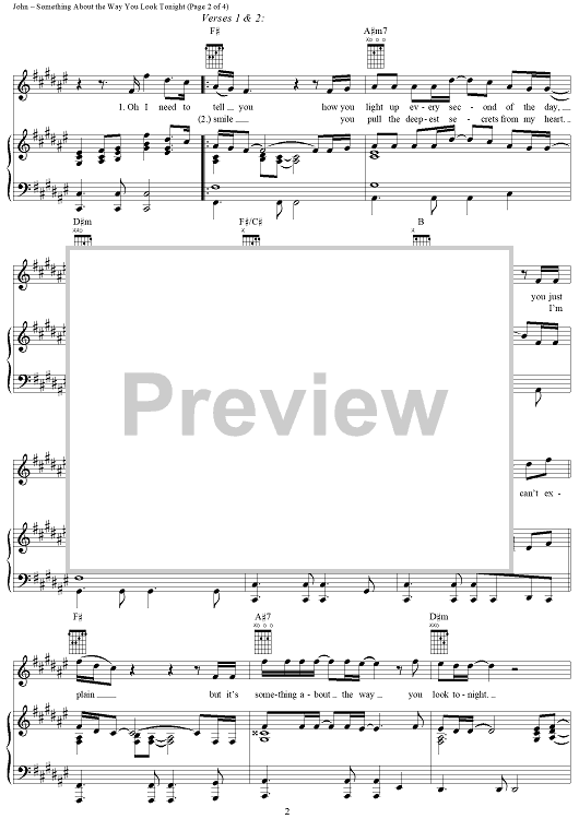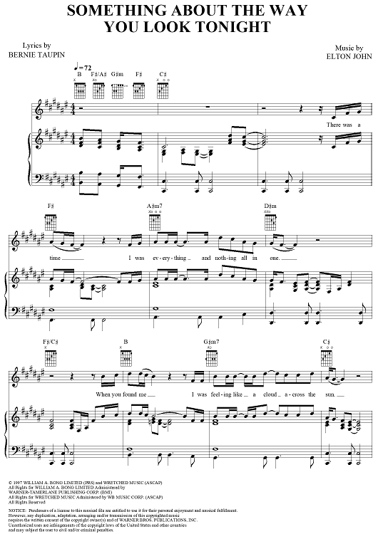Digital Sheet Music for Something about the Way You Look Tonight by Elton John, Bernie Taupin scored for Piano/Vocal/Chords; id:289285