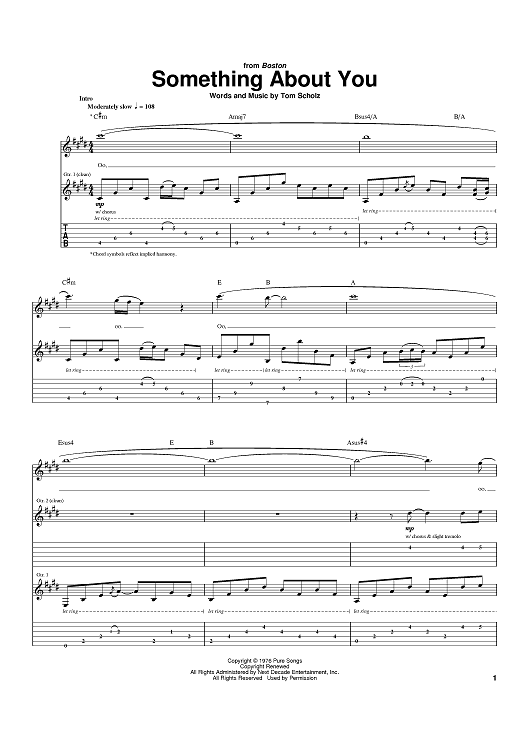 Digital Sheet Music for Something About You by Boston, Tom Scholz scored for Guitar Tab; id:402550