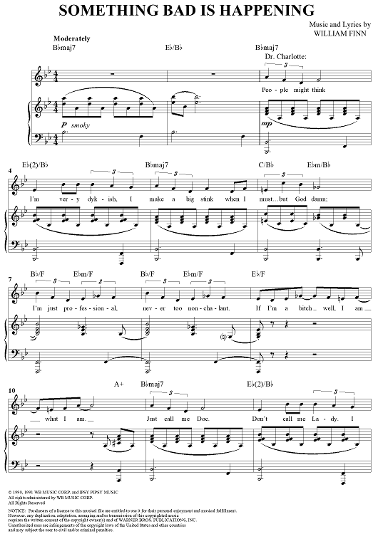Digital Sheet Music for Something Bad is Happening by William Finn scored for Piano/Vocal/Chords; id:269769
