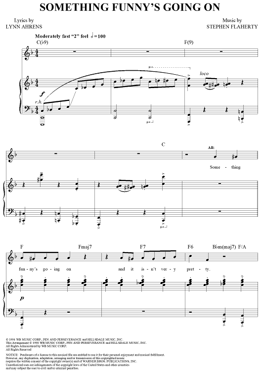 Digital Sheet Music for Something Funny's Going On by Stephen Flaherty, Lynn Ahrens scored for Piano/Vocal/Chords; id:311574