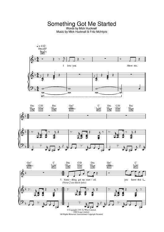 Digital Sheet Music for Something Got Me Started by Mick Hucknall, Simply Red, Fritz McIntyre scored for Piano/Vocal/Chords; id:388442