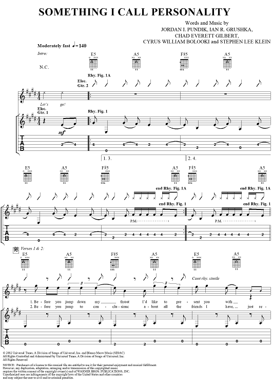 "Something I Call Personality" Sheet Music by New Found Glory