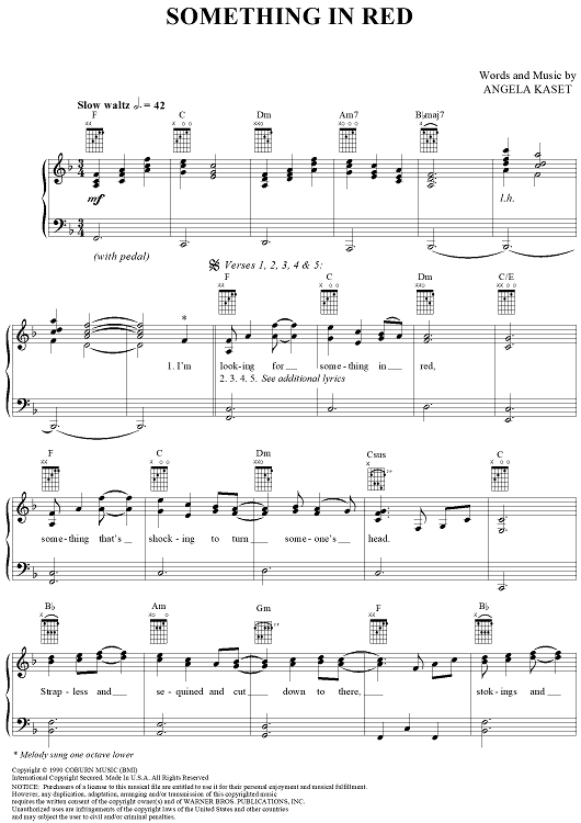 Digital Sheet Music for Something In Red by Lorrie Morgan, Angela Kaset scored for Piano/Vocal/Chords; id:249721