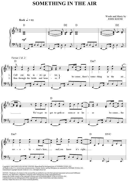 Digital Sheet Music for Something In the Air by Tom Petty and The Heartbreakers, John Keene scored for Piano/Vocal/Chords; id:250149