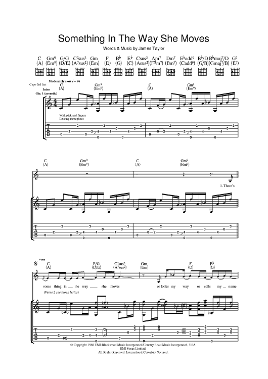 "Something In The Way She Moves" Sheet Music by James Taylor
