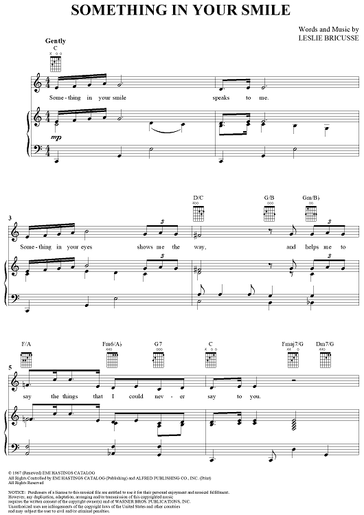 Digital Sheet Music for Something in Your Smile by Leslie Bricusse scored for Piano/Vocal/Chords; id:362835